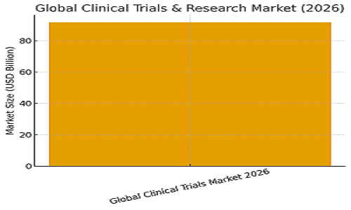 The global clinical trials and research market is expanding rapidly and is expected to reach approximately USD 91–100 billion by 2026, driven by rising investment in pharmaceutical innovation, increased disease burden, and the expansion of advanced therapeutic disciplines such as oncology, immunotherapy, gene therapy, and precision medicine. Growth is supported by strong R&D spending from pharmaceutical companies, academic research centres, and biotechnology firms worldwide.
